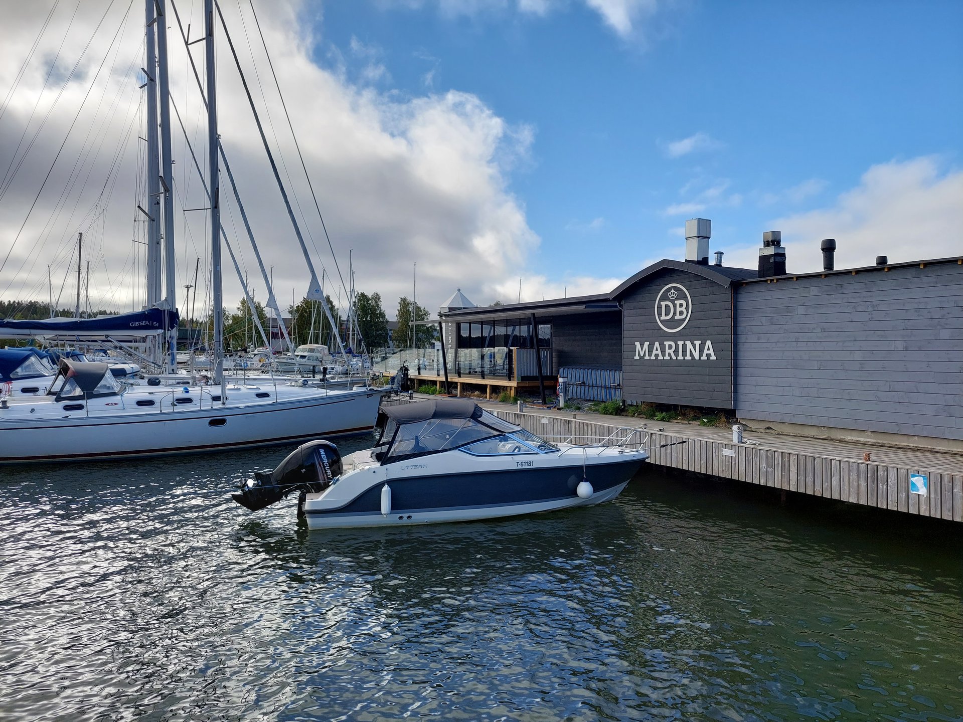 Herkullista lohikeittoa syödessämme DB Marinan rantaravintolassa Sam ja Seidi kertoivat paikan mielenkiintoisesta historiasta ja Sven kunnan roolista ja tavoitteista. Vierasvenesataman uutta konseptia alettiin suunnittelemaan ja ideoimaan tiiviisti yhdessä alueen muiden toimijoiden ja kunnan kanssa rautatehtaan lopetettua toimintansa. Ihan veden äärelle rakennettiin tilat kaupalle ja ravintolalle ja yrittäjät ostivat vanhat teollisuuskiinteistöt, joissa nyt säilötään veneitä talvisin.